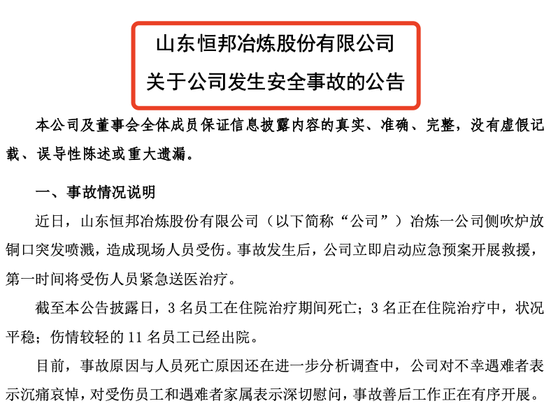 在线配资炒股选 突发公告!恒邦股份:冶炼一公司发生安全事故 停产整顿