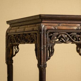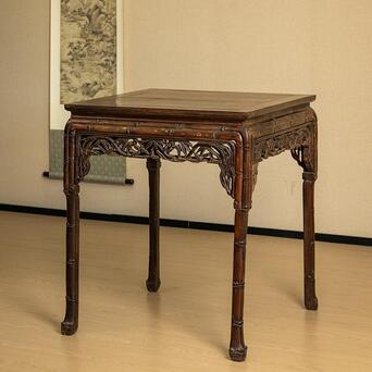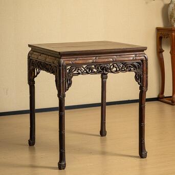 股票杠杆开通条件 清中期 红木透雕竹纹方桌 尺寸:72.6×72.3×85.8 此方桌